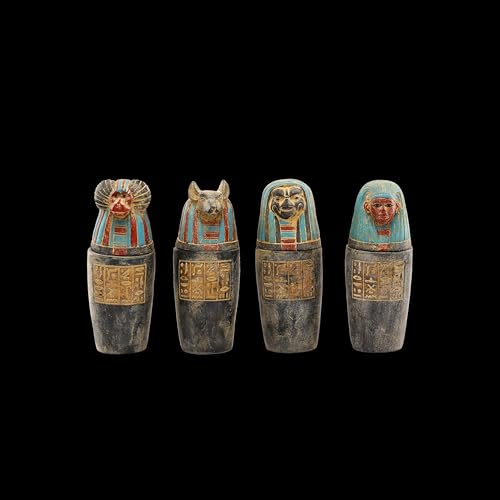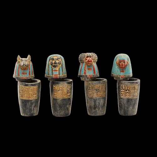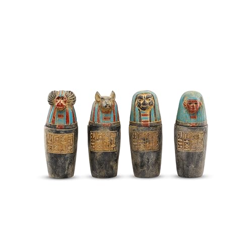 generic - Egyptian Art canopic jars set 4 sons of Horus, made from black stone hand painted. Made in Egypt.