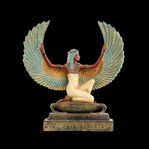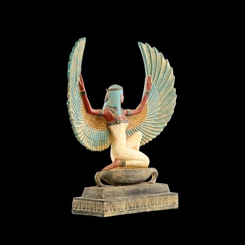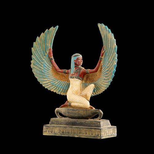 Generic - تمثال مصري كبير للإله إيزيس بجناحين، إله الخصوبة والأمومة والسحر والموت والشفاء والبعث، مصنوع من حجر الأسود الثقيل، صنع يدويا في مصر