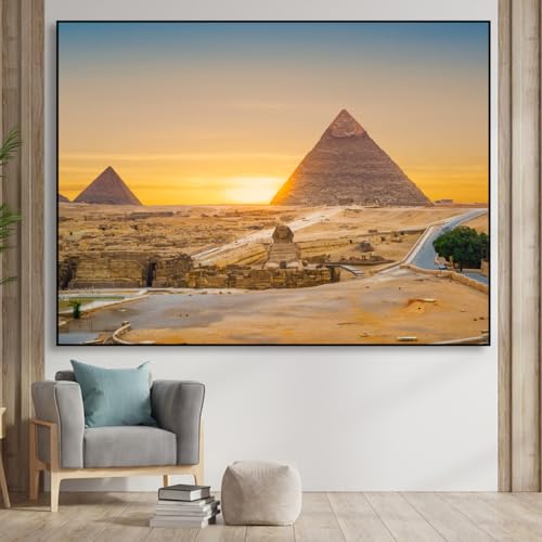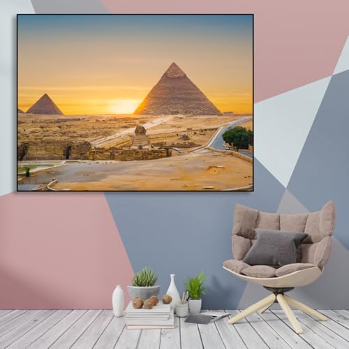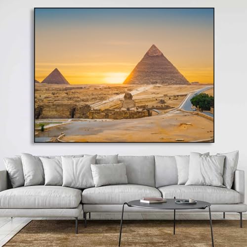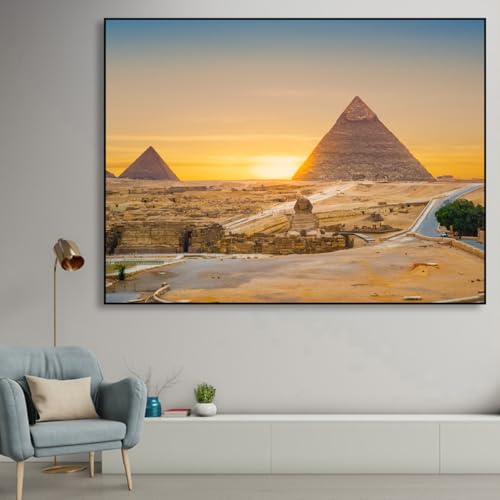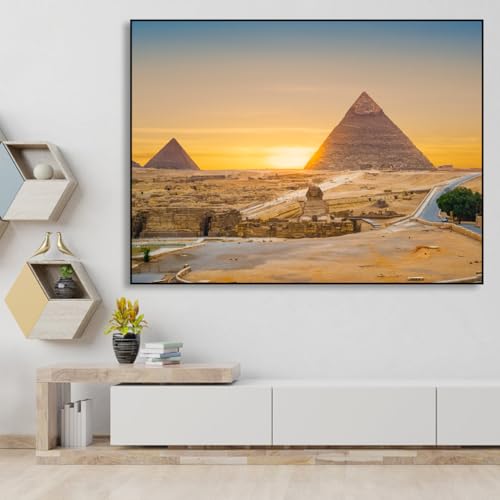 Generic - Egyptian Pyramids Wall Painting, MDF Wood Frame 10mm, Desert Scenery, Home Decor (3) (20x30, 25)