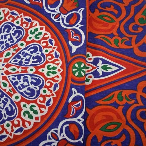 - RAMADAN KHAYAMIA TRADITIONAL DESIGN: Elegant Egyptian-style tablecloth featuring intricate geometric patterns in vibrant red, blue, and green colours with ornate medallion motifs