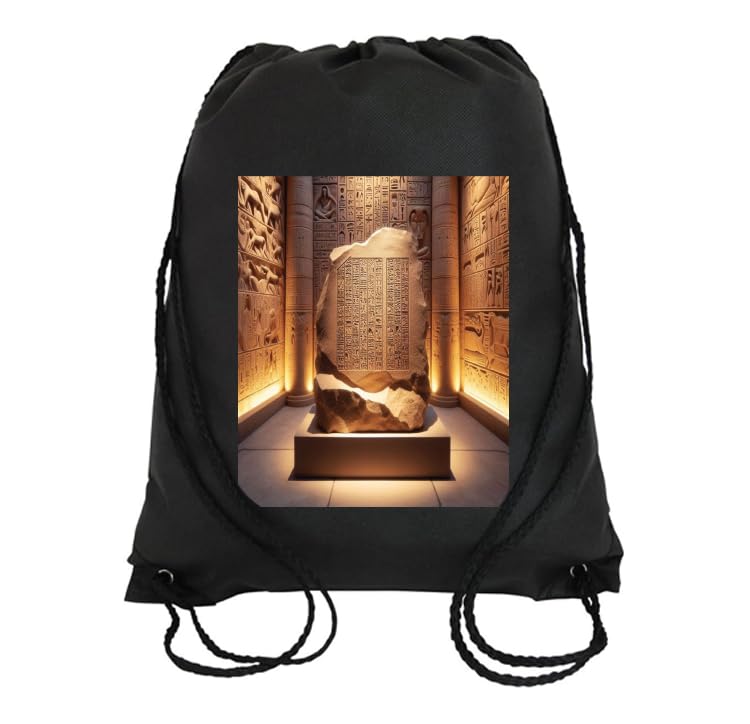 Generic - شنطة ظهر برباط مطبوع عليها معبد مصري، اسود مع تصميم هيروغليفي قديم