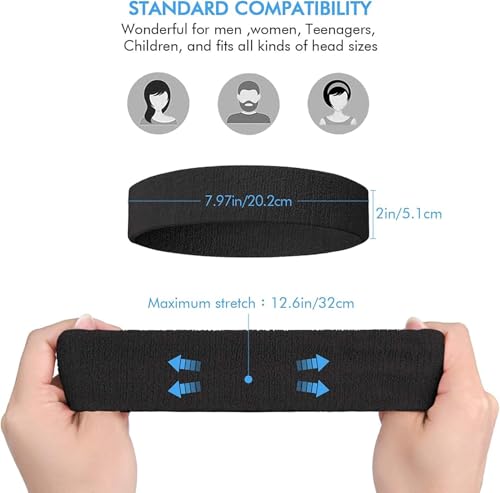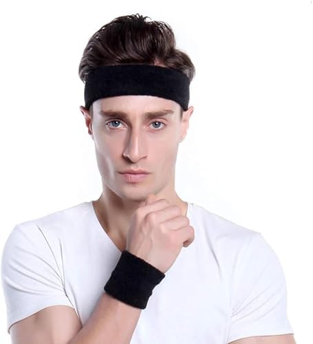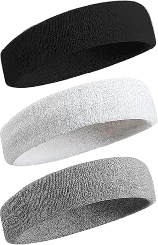 - EIGYWOLF Cotton Terry Fabric Moisture Wicking Headcollar Gym Gym Tennis Basketball Running Men Women (3 Piece), Black, White Gray, One Size