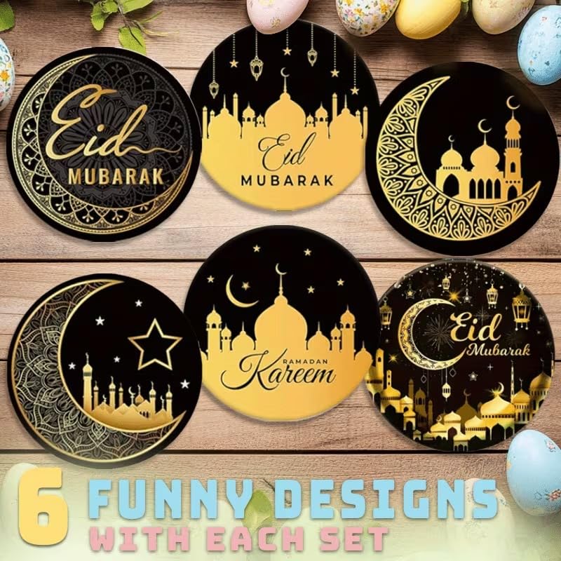 - تصاميم متعددة ومتنوعة: تحتوي المجموعة على 6 تصاميم مختلفة تشمل عبارات عيد مبارك ورمضان كريم مع زخارف إسلامية تقليدية وأنماط هندسية جميلة تناسب جميع الأذواق