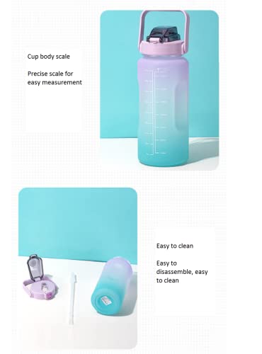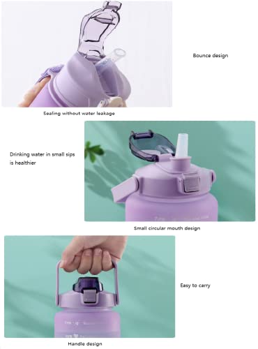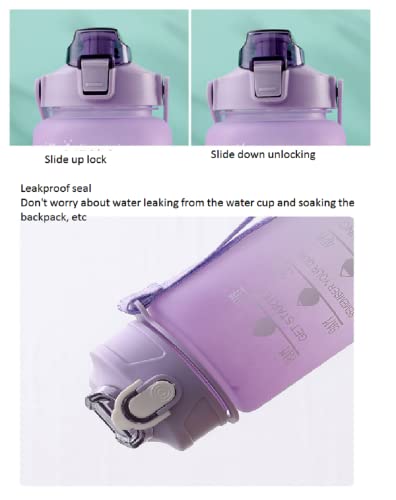 Eidyer - 3 Pack Sports Water Bottle With Straw, 2L+900ml+300ml with Time Marker Reminder, Leak-proof Water Bottles for Fitness, Camping Yoga School Trave Outdoor Sports-Purple Green