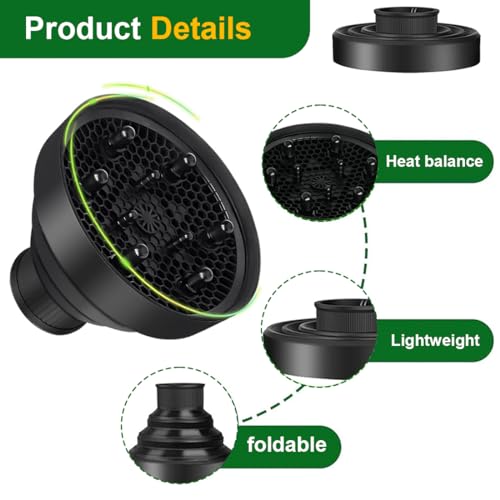 - الوظيفة الرئيسية: يساعد على توزيع حرارة وهواء مجفف الشعر بالتساوي، وتوسيع منطقة التجفيف بالحرارة، وتجنب إتلاف الشعر والحفاظ على تجعيد الشعر الطبيعي. أداة احترافية لتجعيد الشعر وتجفف وتضيف كثافة دون تجعد. لذلك يمكنكِ الحصول على تصفيفة شعر مثالية بشكل أسرع وأفضل.