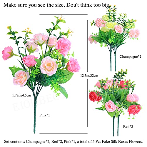 EIOKBECY - Artificial Roses Flowers,Fake Silk Flowers Blooming Rose Bridal Bouqets For Wedding Home Birthday Party Arrangment Garden Decoration, 5 Pcs