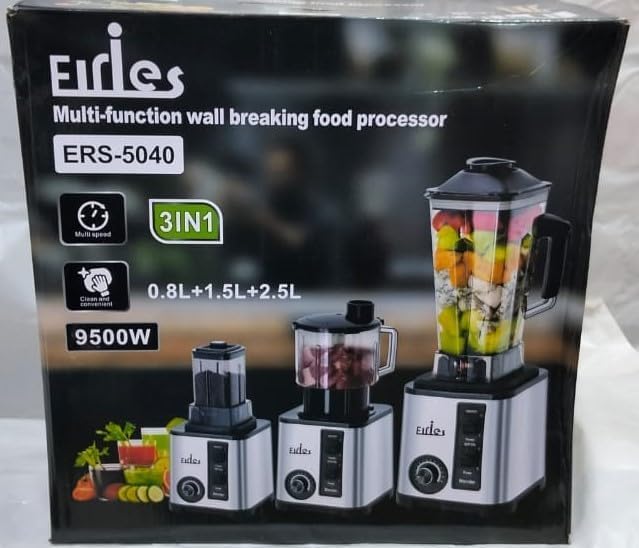 Generic - EIries 3 in 1 Multipurpose Stainless Steel Food Processor Blender 9500W Heavy Duty Multi Use with Meat Chopper and Jug 2.5L Anti-Break Grinder Spice Coffee Grinder 15 Speeds ERS-5040