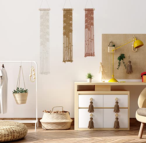 EISKBC - Small Macrame Wall Hanging Set, Boho Macrame Tapestry Wall Decor, Woven Yarn Tassel Tapestry Wall Art, Handmade Home Decor for Bedroom Lving Room (Brown-Yellow-White)