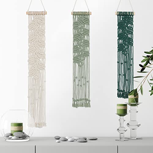 EISKBC - Small Macrame Wall Hanging Set, Boho Macrame Tapestry Wall Decor, Woven Yarn Tassel Tapestry Wall Art, Handmade Home Decor for Bedroom Lving Room (Green-Cyan-White)
