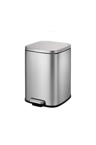 EKO - EKO Stainless Steel Soft Close and Finger Print Proof Square Garbage Bin, 20 Liter Capacity, Silver