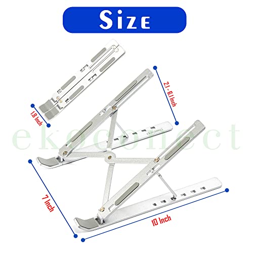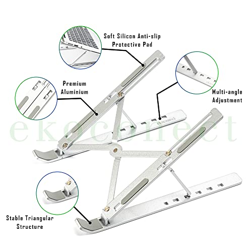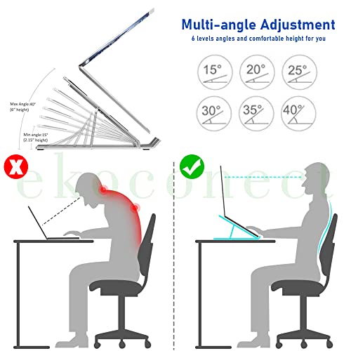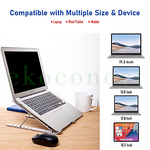 ekoconect - حامل لاب توب قابل للتعديل، رافع مريح من الألومنيوم، للماك بوك والنوت بوك والكمبيوتر من ايكوكونكت، لون فضي
