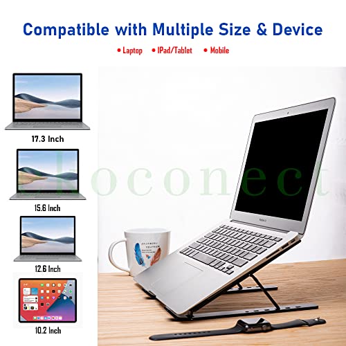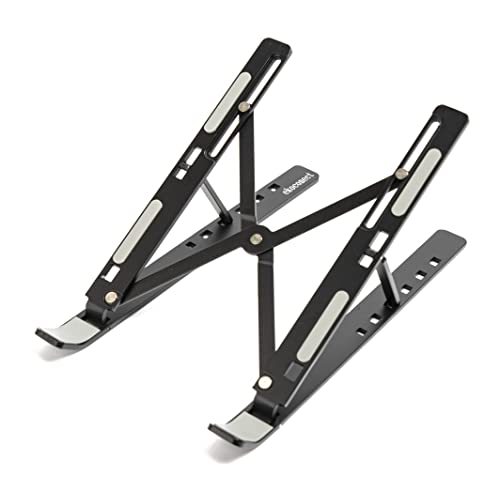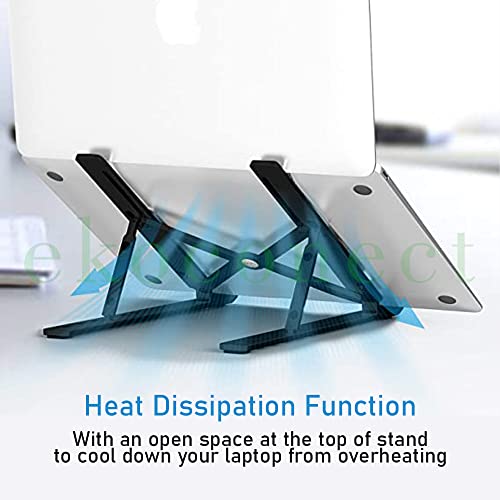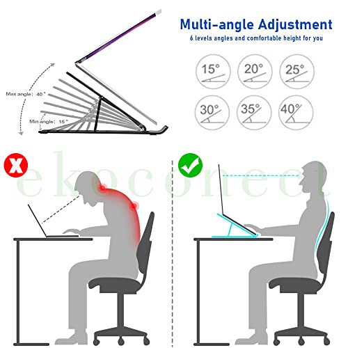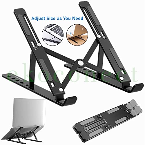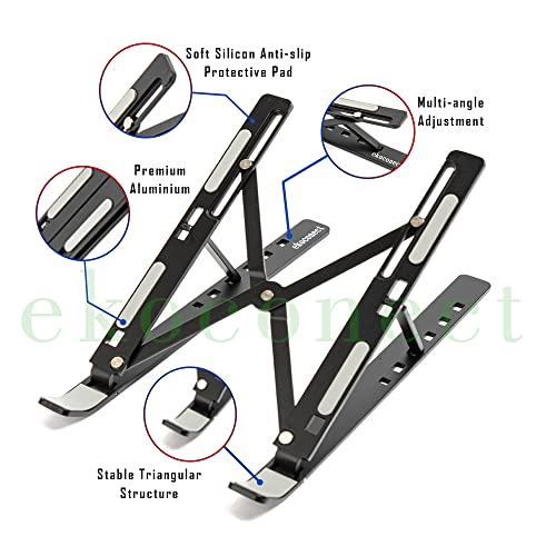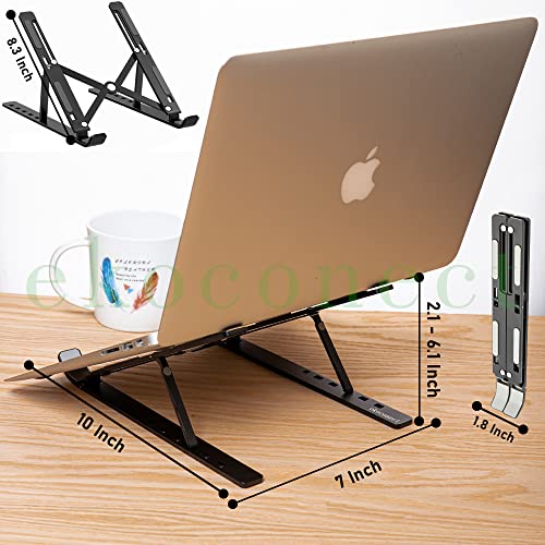 ekoconect - حامل لاب توب مصنوع من خليط معدني من الالومنيوم بلون اسود بتصميم محمول وارتفاع متعدد المستويات قابل للتعديل من ايكوكونكت، متوافق مع لاب توب ماك بوك اير برو وديل واتش بي ولينوفو مقاس 10-15.6 بوصة