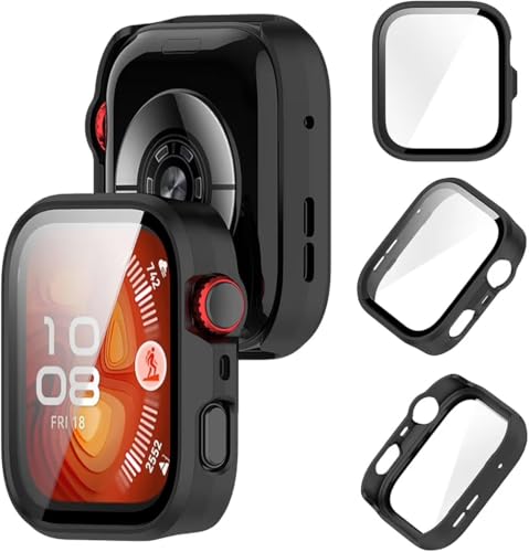 جراب لساعة هواوي فيت 4 برو من الجوال، مصنوع من مادة البولي كربونات + طبقة من الزجاج المقسى، جراب واقي مدمج خفيف الوزن ورفيع ومضاد للكسر ومضاد للصدمات ومقاوم للخدش يوفر حماية كاملة للساعة الذكية