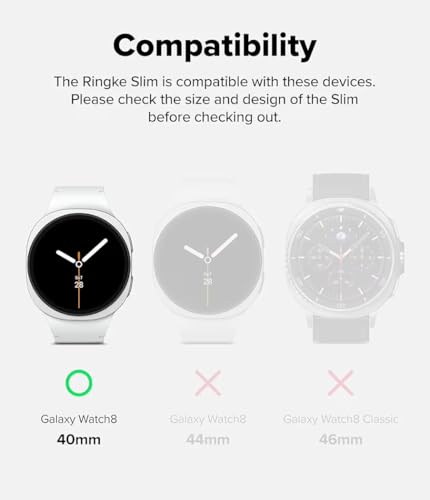 - Slim and lightweight case for Galaxy Watch 8 40 mm (screen protector not included)