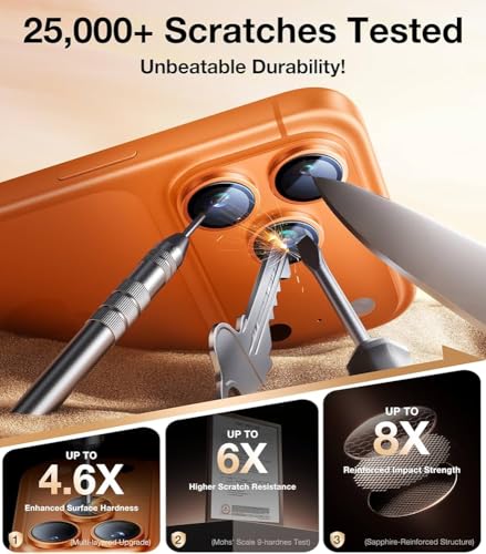 - 【ما زلت تستخدم الزجاج العادي على عدسات الياقوت البنفسجي؟ يستحق جهاز ايفون الجديد الخاص بك درعًا حقيقيًا بدرجة 9H+】منذ 9 سنوات، ابتكرت الترا جلاس ار اند دي بلا هوادة لتحسين حمايته. في عام 2025، ابتكرنا أول أيون ياقوتي مدمج في الصناعة في زجاج 9H - مما يوفر مقاومة للكسر ومتانة لا مثيل لها. مصمم خصيصًا لحماية عدسات ايفون 17 برو ماكس/17 برو!
