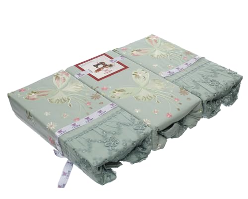 Egyptian Textile - El-Gawhara Set of 4 Pieces Sheet 240 * 260 + 2 Pillow 55 * 70 + 1 Pillow 160 * 45 Embroidered Cotton 100% treated against the pilling and shrinkage"Olive" - 18536