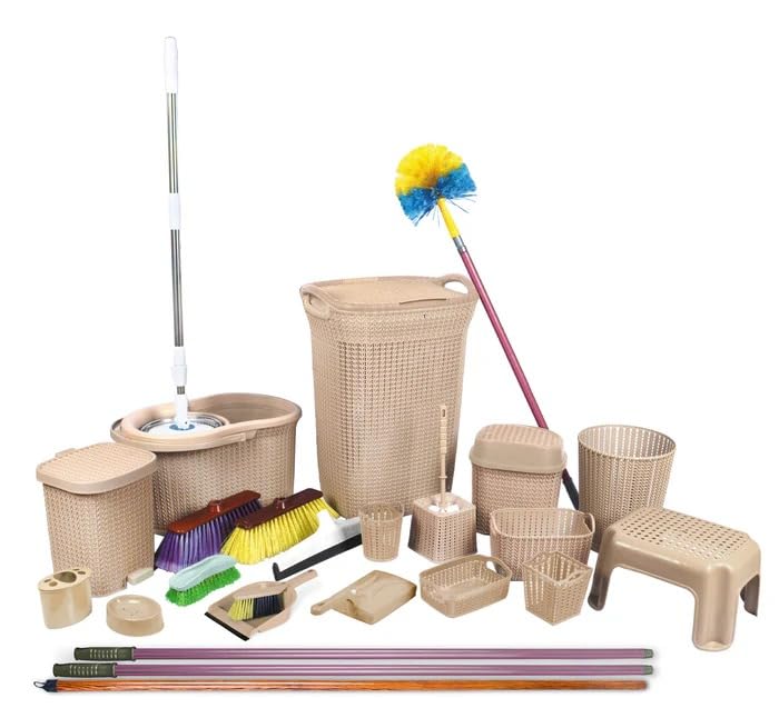 - مستوحاة من أسلوب فريد من نوعه متماسك عتيق يحنين إلينا بتصميم عصري. تشتمل مجموعة طقم بالــــــــــــم على سلة غسيل النخيل ، وسلة غسيل بيضاوية ، وصندوق قمامة صغير ، وحاوية قمامة متأرجحة ، وصندوق نخيل ، وفرشاة حمام النخيل ، وسلة خبز صغيرة ، وسلة متعددة الأغراض ، وسلة دائرية ، وسلة مكس مربعة ، ومكنسة دوارة مع 3 لفات ، فرشاة غطاء الأرضية ، منفضة دائرية بمقبض تلسكوبي ، دلو نخيل مع ممسحة ومقبض ، ممسحة بمقبض خشبي ، فرشاة هيلين ناعمة بمقبض معدني ، فرشاة هيلين صلبة بمقبض معدني ، مجرفة مع كرسي حمام فرشاة ، صينية صابون وحامل فرشاة أسنان . كل ما يحتاجه منزلك نظيفًا ومنظمًا.