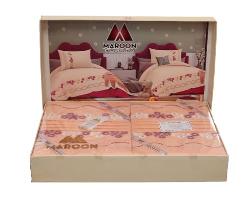 Egyptian Textile - المارون طقم 6 قطع، 2 ملاية مقاس 240×200 + 2 خدادية مقاس 60×70 + 2 مخدة مقاس 120×45، مطرز مخلوط 70% قطن 30% بوليستر معالج ضد الانكماش والوبرة، "بصلي" - 18477