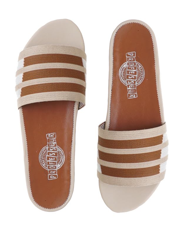 H.Y Zalat - EL-Profressor Striped Slip-On Flat Slipper,Comfortable Open-Toe Indoor & Outdoor Shoe Size 42 For Woman's,Beige113