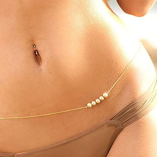 ELABEST - سلاسل خصر ذهبية بسيطة جذابة بحبيبات لؤلؤ للنساء من إيلابست, بيرل معدن