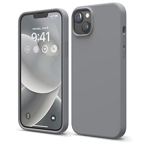 elago - جراب حماية رفيع للموبايل بأكمله من ايلاجو، مصنوع من السيليكون السائل ومضاد للصدمات ببطانة ناعمة ومقاومة للخدش من المايكروفايبر، متوافق مع موبايل آيفون 14 بلس 6.7 بوصة، (لون رمادي داكن)
