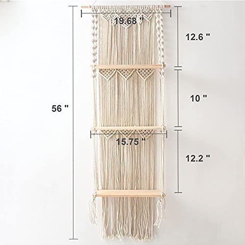 - 【PERFECT SIZE】Our macrame wall shelf is made from high-quality beechwood, total length is 63 inches, each individual shelf is approximately 15.75 inches long, 5.9 inches wide, and 0.35 inches thick, Made to last.
