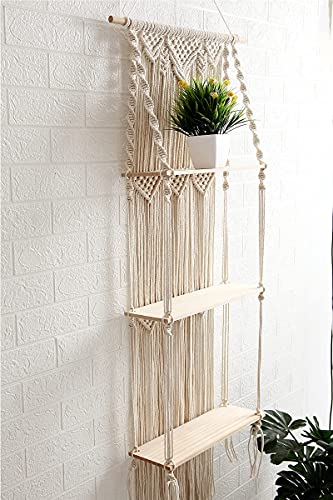 - 【STYLISH MACRAME WALL SHELF】Our 3-tiered boho shelf is both a unique decoration and a wonderful way to display your plants, candles, and other home decors. Great for a unique birthday or housewarming present for any artistic friend you know!