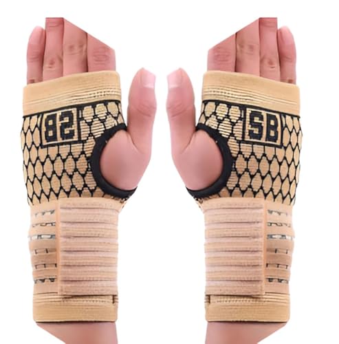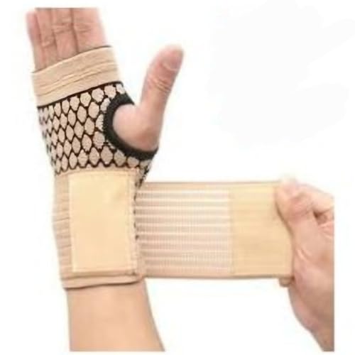 Generic - دعامة معصم مرنة مع حزام شرائط ، مثالية للالتواءات او الاصابات او الاستخدام الرياضي ، دعم دون تثبيت المرونة، لليسار او اليمين ، قطعتين (بيج)