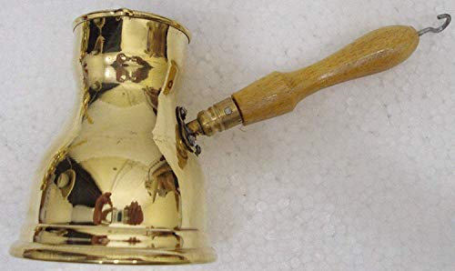 - 1 وعاء نحاسي نحاسي ابريك بريكي لتحضير القهوة التركية اليونانية جازفا سيزف جيزف التركية التركية ارارات العربية العربية مع مقبض خشبي، إبريق مصري مطروق يدويا مقاس رقم 3 (4.5 اونصة/ 140 مل)