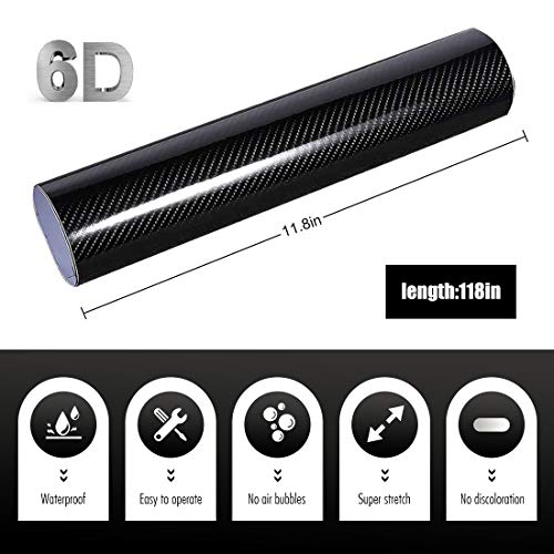 ELCM - ELCM Carbon Fiber 6D Car Wrap Vinyl High Gloss DIY Waterproof Film for Motorcycles Computer Desk Tool box 300cm x 30cm