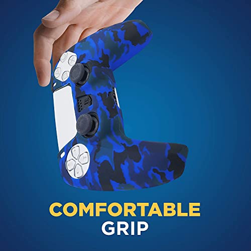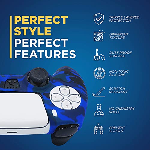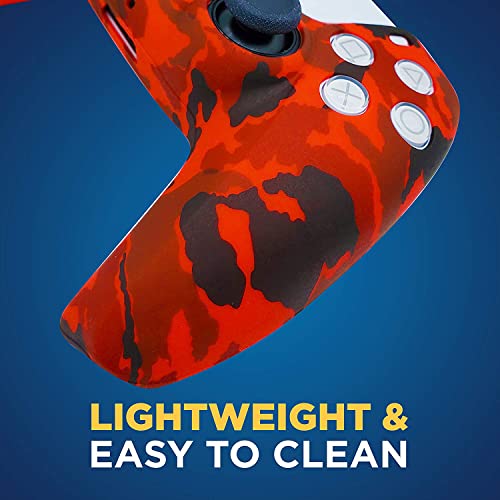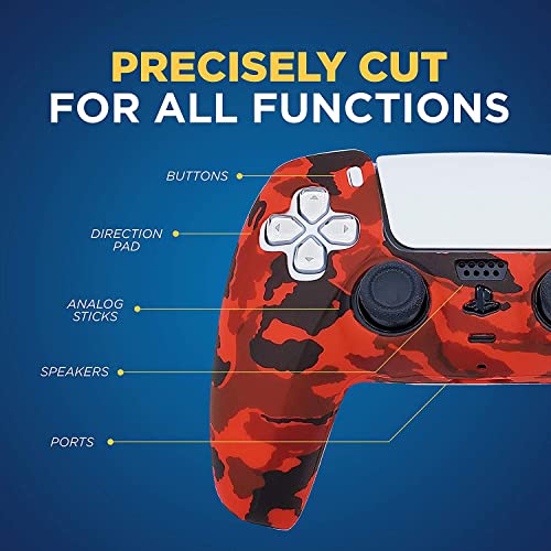 ELECDON - ELECDON PS5 Controller Silicone Cover | Studded Printing Silicone Cover Skin Case for PS5 Dualsense Controller x 2(Camouflage Red+Blue) with Pro Thumb Grips x 10