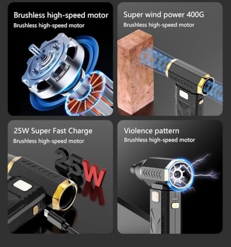 - 【محرك شديد 130000 دورة في الدقيقة】قوة دفع المحرك بدون فرش تصل إلى 55 م/ثانية (65 وات ). تخلص من المهام الصعبة - لن يتوقف منفاخ الهواء الكهربائي.