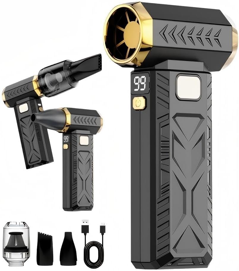Generic - منفاخ هواء كهربائي فائق بقوة 130000 دورة في الدقيقة مع مروحة قوية وجافة ونفاثة مع 6 تروس قابلة للتعديل وضوء ليد وشحن سريع من نوع C للكمبيوتر والكيبورد والأماكن الخارجية وتنظيف المنزل والسيارة
