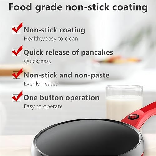 - تم تصميم مقلاة الكريب الكهربائية لسهولة الاستخدام، مما يجعلها مثالية للمبتدئين والطهاة ذوي الخبرة. تضمن ميزاتها سهلة الاستخدام أن يتمكن أي شخص من صنع الكريب والفطائر والتورتيلا اللذيذة دون عناء.