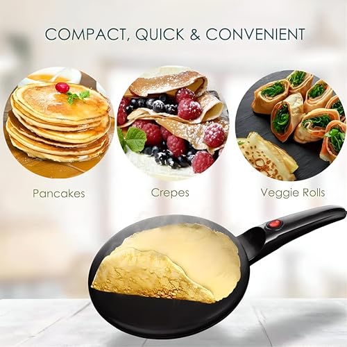 Generic - صانعة كريب كهربائية غير لاصقة للاستخدام المحمول مع التحكم في درجة الحرارة، مثالية لصنع الكريب والفطائر والتورتيلا اللذيذة - تشغيل بسيط مع دليل شامل خطوة بخطوة (ابيض)
