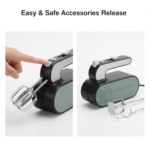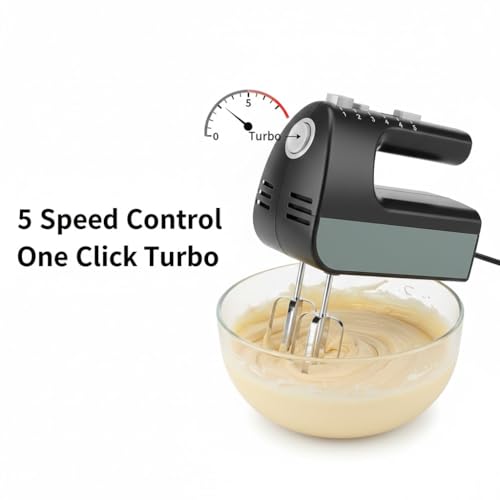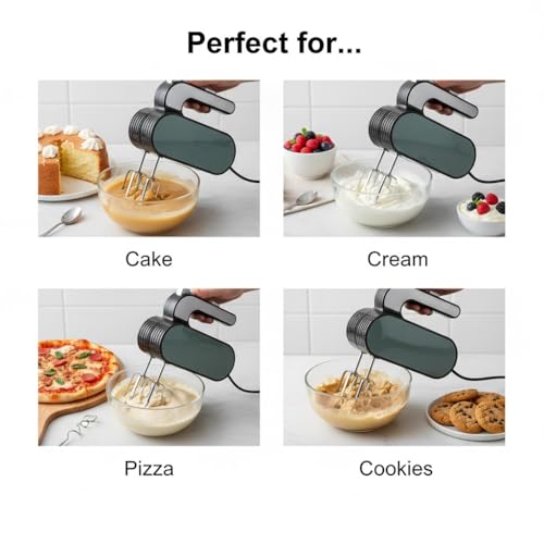 Generic - Electric Egg Beater 2 in 1 250W 5 Speeds with Turbo Pure Copper Motor Stainless Steel Beaters and Dough Hook – Household & Bakery Use