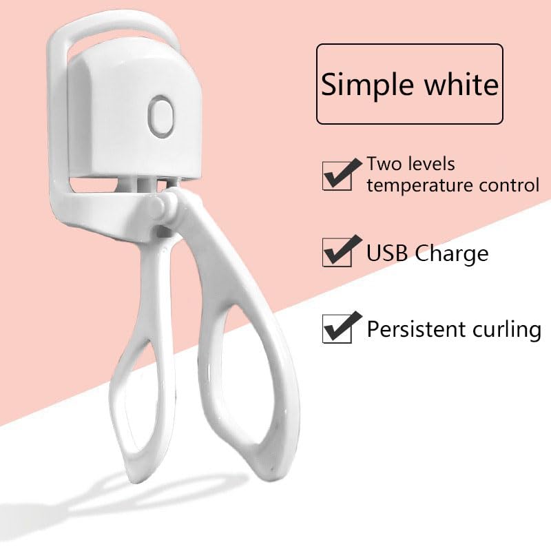 QIYOU - Electric Eyelash Curler, USB Rechargeable, 2 Temperature Settings, Long-Lasting Heating Curling Device, Suitable for Families, Beauty Salons and Gift Giving, White