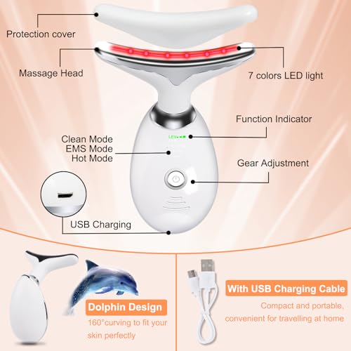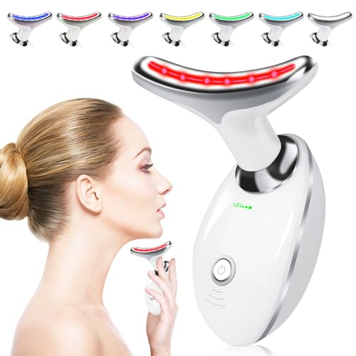 Gelanty - Electric Face Massager, 7 Colors Anti-Aging Neck Eye Massager, Anti Wrinkle Device with 3 Modes, Facial Neck Massager for Skin Care Face Toning Skin Tightening