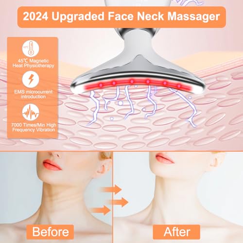 - 【Upgraded Skin Care Technology】 This facial neck massager has 45℃ heating function, high frequency vibration up to 7000 times/minute, promote nutrient absorption through EMS micro-current introduction, skin metabolism, slow down the aging of skin cells.