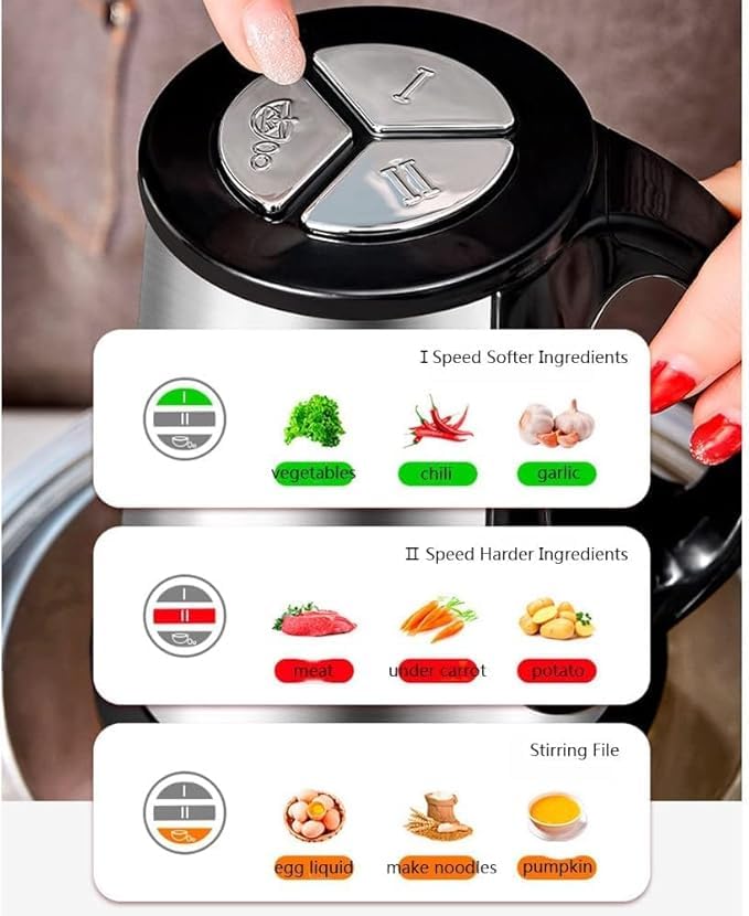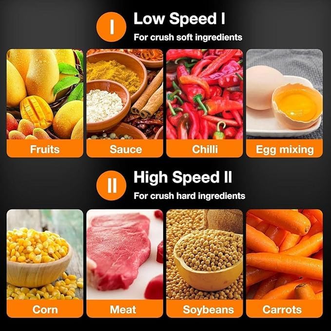 - 🔹 محرك قوي 500 وات مع 3 سرعات، استمتع بالتحكم الكامل مع 3 سرعات تقطيع تعمل بمحرك قوي 500 وات. سواء كنت بحاجة إلى قطع خشنة أو مهروس ناعم، فإنه يوفر نتائج سلسة وسريعة في كل مرة.