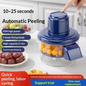 Generic - Electric Food Processor, Blue, 10-25s Automatic Peeling, 50W Power, 5 Blades, Li-ion Battery, Transparent Bowl, Vegetable & Fruit Slicer