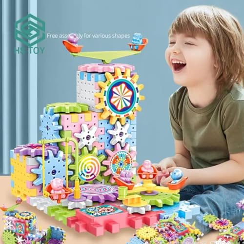 Generic - لعبة مكعبات بناء كهربائية على شكل تروس، ألعاب تركيب ملونة، مجموعة بناء إبداعية ثلاثية الأبعاد