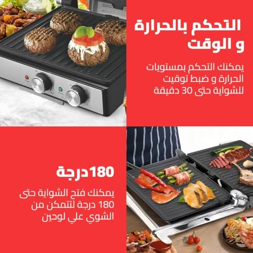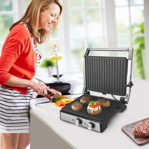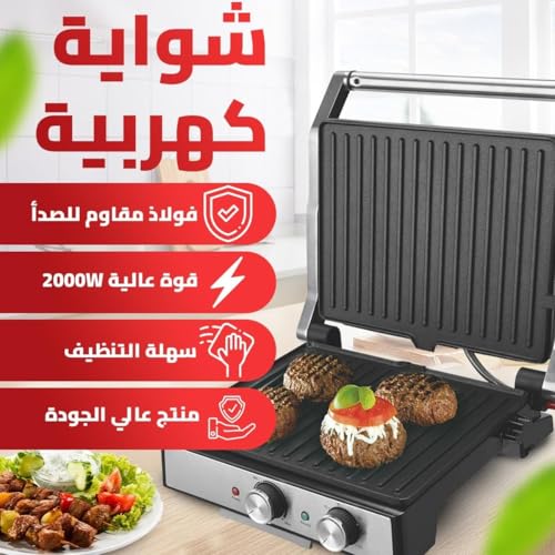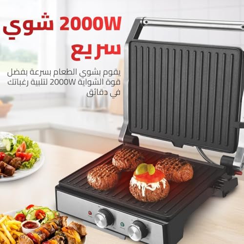 - Powerful 2000W Heating: Strong 2000W power brings fast, even heat across the 29 x 23 cm non stick plate, so you can sear stripes on kebab skewers, toast burger buns, or warm up baladi bread without cold spots.