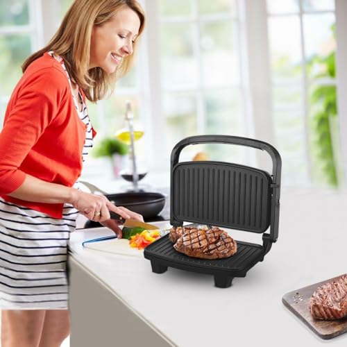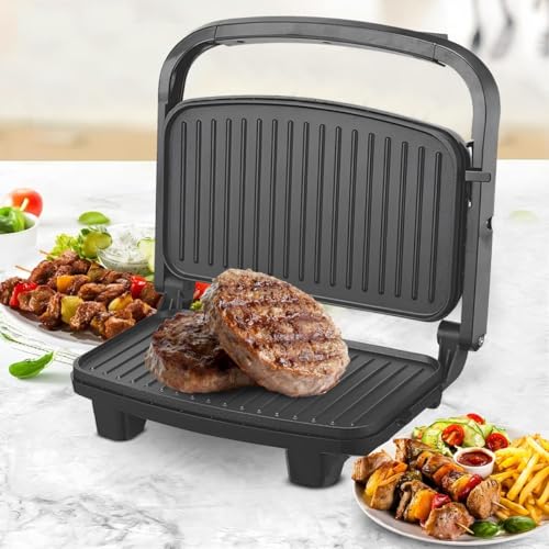 - Fast Home Grilling, Any Day: This electric grill brings café-style sandwiches and weeknight dinners indoors. The non-stick plate heats fast and the adjustable temperature helps you nail toasties, veggies, and kofta patties with less oil and easy cleanup.