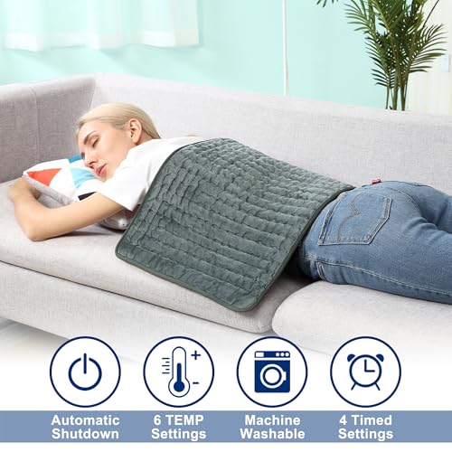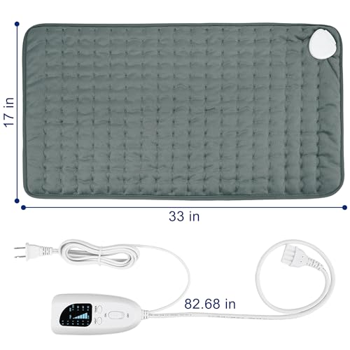 VIBOOS - وسادة تدفئة كهربائية لتخفيف آلام الظهر، وسائد حرارية للتقلصات بخاصية الإيقاف التلقائي، قابلة للتنظيف في الغسالة، مناسبة للرقبة والكتف، (لون رمادي غامق، مقاس 83.82 × 43.18 سم)