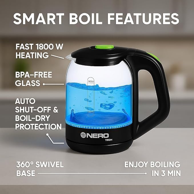 - مشروبات ساخنة سريعة، بدون انتظار: تسخين 1800 واط يجعل الماء يغلي بسرعة للشاي والقهوة والنودلز سريعة التحضير ومياه تسخين زجاجة الأطفال، مع نافذة شفافة لمستوى المياه سعة 1.8 لتر حتى تغلي ما تحتاجه فقط.