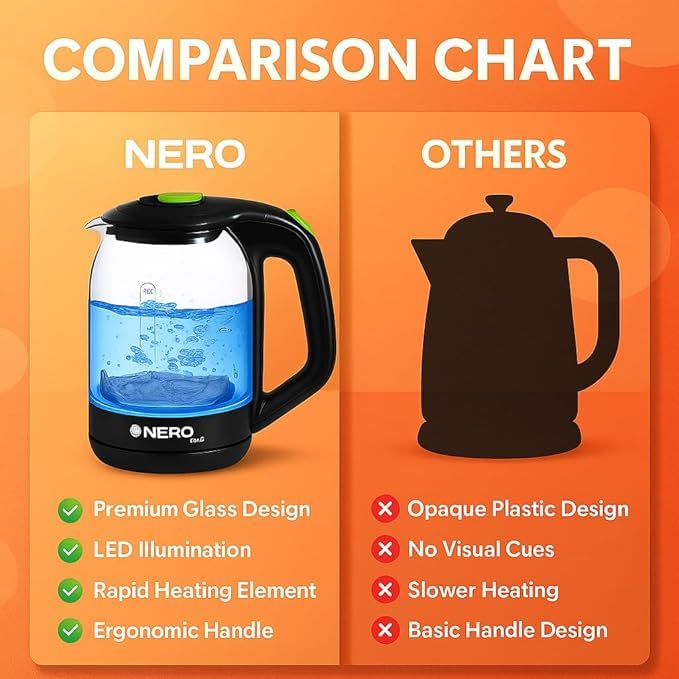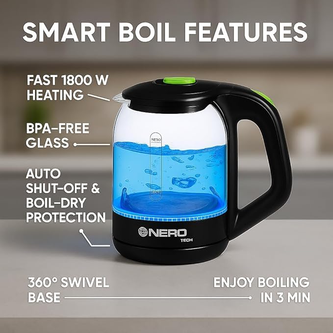 - Fast Boiling for Busy Mornings – No more waiting forever for stovetop water to heat. This 1800W kettle boils 1.8L of water in minutes—ideal for morning tea, instant noodles, or coffee before work.