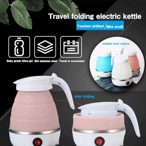 Generic - غلاية كهربائية من بلاك فاير باللون الوردي، مصنوعة من الفولاذ غير القابل للصدأ، قابلة للطي سهلة التخزين، سعة 600 مل