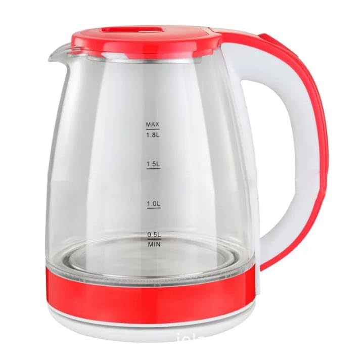 Generic - Electric Kettle Glass1500W Water Boiler 2.0L With Stainless Steel Filter Automatic Shut Off Heat Resistant Handle Dry Boil Protection Luxury Pink Design (Red)