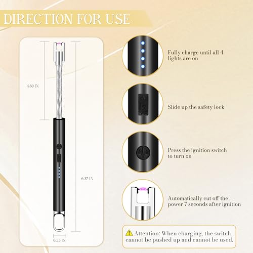- [SAFEGUARDING YOUR SAFETY]- Candle lighter is designed with an automatic power-off function. Electric lighter will automatically cut off the power 7 seconds after ignition, which not only saves energy but also greatly reduces risks. In addition, lighters for candle is equipped with a safety lock, it can only be used normally after the safety lock is opened, effectively preventing child injuries. Such a dual protection design provides a reliable guarantee for your safe use.